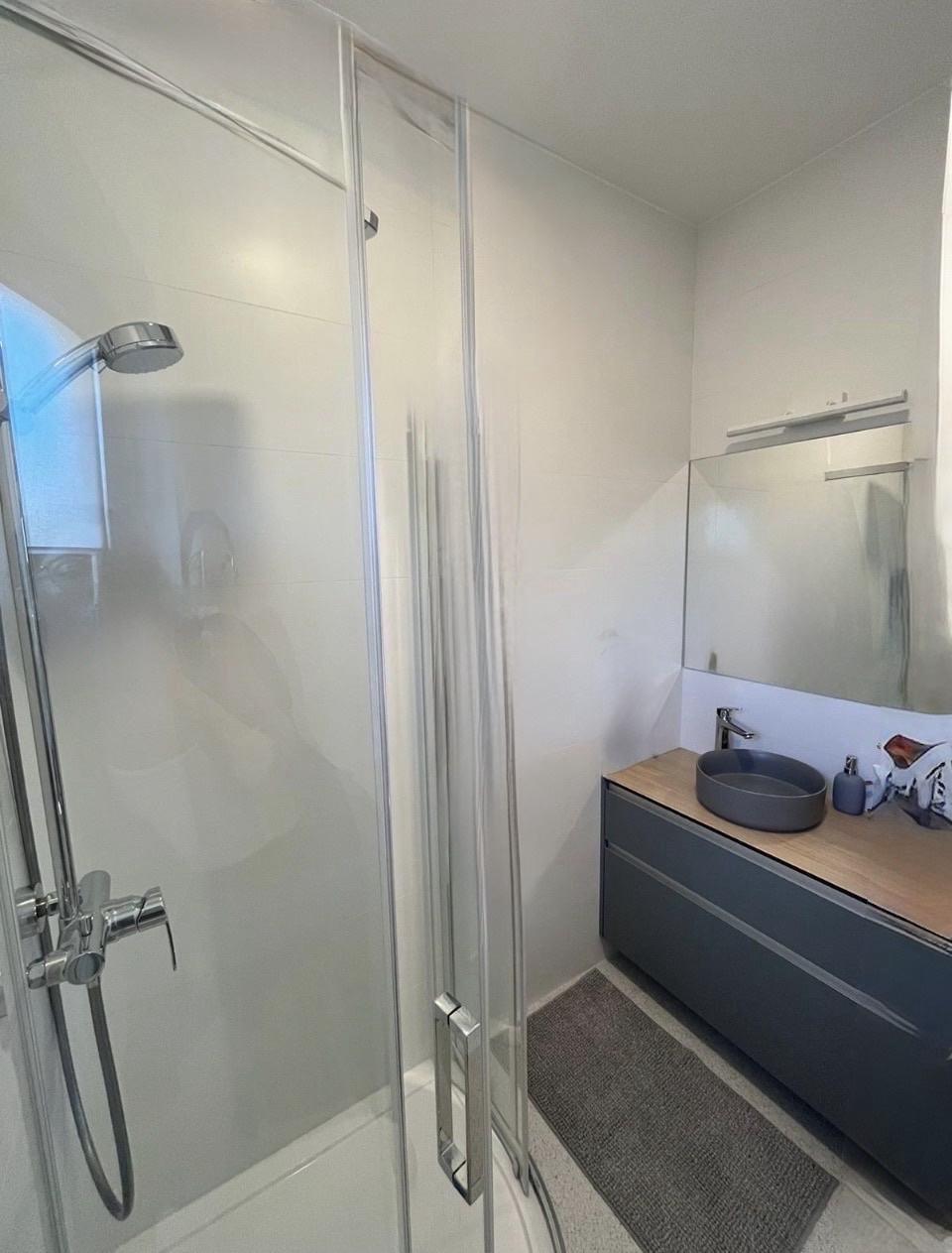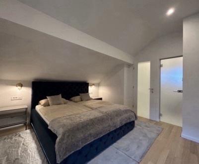 Na gornjoj etaži smještena je prostrana master spavaća soba s vlastitom kupaonicom i izlazom na drugu privatnu terasu s panoramskim pogledom na zelenilo i grad.Stan se prodaje potpuno namješten.